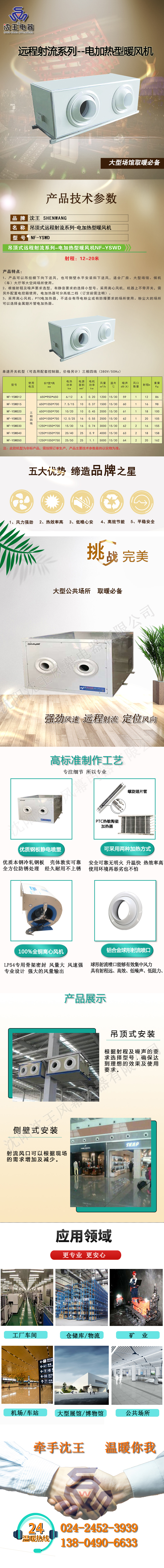 吊顶式远程射流系列电加热型暖风机NF-YSWD