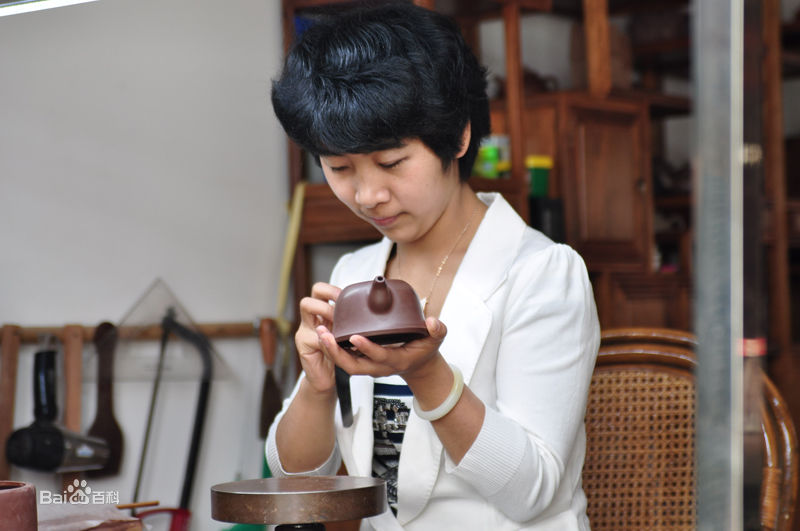 簡(jiǎn)介吳敏 中國(guó)陶瓷工業(yè)協(xié)會(huì)會(huì)員 中國(guó)工藝美術(shù)學(xué)會(huì)會(huì)員 江蘇省陶瓷行業(yè)協(xié)會(huì)會(huì)員 宜興紫砂行業(yè)協(xié)會(huì)會(huì)員 1982年出生于陶都宜興。自小受家庭影響,耳濡目染,酷愛(ài)紫砂藝術(shù)。父親吳亞平1956年進(jìn)蜀山陶業(yè)生產(chǎn)合作社(宜興紫砂工藝廠前身),1958年師從顧景舟大師,蒙其耳提面命、悉心指導(dǎo),深得其真?zhèn)鳌D赣H錢(qián)麗媛1958年進(jìn)廠,先后師從王寅春及蔣蓉大師。大學(xué)畢業(yè)后隨父母學(xué)習(xí)紫砂壺的設(shè)計(jì)與制作,06年創(chuàng)建華寶齋紫砂藝術(shù)工作室。期間還先后在南京藝術(shù)學(xué)院和中央工藝美術(shù)學(xué)院紫砂造型設(shè)計(jì)班深造。15年,清華大學(xué)紫砂高級(jí)研修班結(jié)業(yè)。在理論與實(shí)踐的結(jié)合下形成了自己的藝術(shù)風(fēng)格。作品以光素為主,方器和筋瓤器也有涉獵。作品造型新穎,工藝?yán)系?,神形兼?zhèn)?,具有濃厚的藝術(shù)氣息。至今已有六十多件作品問(wèn)世,深受藏家青睞。14年,到美國(guó)克瑞頓大學(xué)進(jìn)行學(xué)術(shù)交流,《節(jié)節(jié)高升》壺受到與會(huì)者的一致好評(píng)。15年,《三羊開(kāi)泰》壺在馬來(lái)西亞第一現(xiàn)代美術(shù)館展出,被該館永久收藏。 并有多件作品被《紫砂壺全書(shū)》,《紫砂壺圖》,《壺史》,《茗壺賞析》,《瑰寶紫砂》,《壺源》等大型書(shū)籍收編入冊(cè)。 2004年,《菊蕾》壺被無(wú)錫市博物館永久收藏,同年《祥和》壺榮獲中國(guó)太湖博覽會(huì)中國(guó)工藝美術(shù)精品展銅獎(jiǎng)。 2005年《曉鳴》壺被中華民族藝術(shù)珍品博物館永久收藏。 2006年《紫扁》壺入選首屆東方工藝美術(shù)之都博覽會(huì),獲銀獎(jiǎng)。 2008年《直形牛蓋》壺在中國(guó)收藏家喜愛(ài)的藝術(shù)大師和精英評(píng)選活動(dòng)中榮獲金獎(jiǎng)。 2009年《事事如意》壺被中華藝術(shù)珍品博物館永久收藏。 2009年《清源》壺獲第三屆全國(guó)紀(jì)念品博覽會(huì)金獎(jiǎng)。 2010年《紫珠》壺被宜興市美術(shù)館收藏。 2011年《玉韻》壺被山西省藝術(shù)博物館收藏。 2011年《葵仿古》壺被安徽省博物館收藏。 2011年《節(jié)節(jié)高升》壺在中國(guó)工藝美術(shù)精品展覽會(huì)優(yōu)秀作品評(píng)比中獲金獎(jiǎng)。 2011年《八方納?!穳卦诘谑畬弥袊?guó)工藝品博覽會(huì)中獲“中藝杯”金獎(jiǎng)。 2011年《小橋流水》壺獲北京國(guó)際茶文化產(chǎn)業(yè)博覽會(huì)金獎(jiǎng)。 2012年《瑞獅吉祥》壺天津博物館收藏。 2012年《龍鳳呈祥》壺獲第六屆中國(guó)國(guó)際文化博覽會(huì)評(píng)比金獎(jiǎng)并被北京藝術(shù)博物館永久收藏。 2013年《小橋流水》《天福》壺被重慶中國(guó)三峽博物館收藏。 2013年《思源提梁》獲古玩藝術(shù)品博覽會(huì)優(yōu)秀工藝美術(shù)作品評(píng)比金獎(jiǎng)。 2013年《祥和》壺被上海吳昌碩紀(jì)念館永久收藏。 2014年《順風(fēng)》壺被中國(guó)宜興陶瓷博物館永久收藏。 2014年《招財(cái)進(jìn)寶》壺被海南省博物館永久收藏。 2015年《玉兔送福》壺獲中國(guó)工藝美術(shù)“華藝杯”優(yōu)秀作品金獎(jiǎng)。 2010年,2011年連續(xù)被宜興市丁蜀鎮(zhèn)婦聯(lián)評(píng)為“三八”紅旗手。 本頁(yè)信息均來(lái)自于智能編輯,如有發(fā)現(xiàn)錯(cuò)誤,請(qǐng)聯(lián)系我們 4001688709